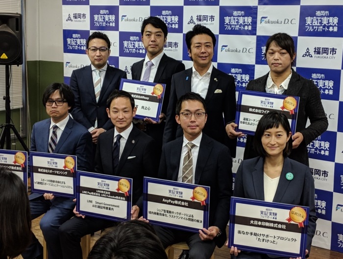 福岡市の民間施設を対象としたキャッシュレス社会実現のための実証実験 | LINE株式会社(代表事業者) LINE Pay株式会社(共同事業者) LINE Fukuoka株式会社(共同事業者) |