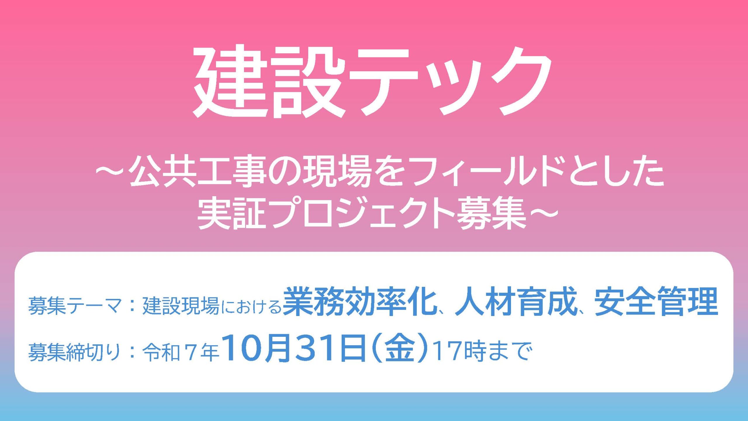 【提案募集】建設テック~公共工事の現場をフィールドとした実証プロジェクト募集~